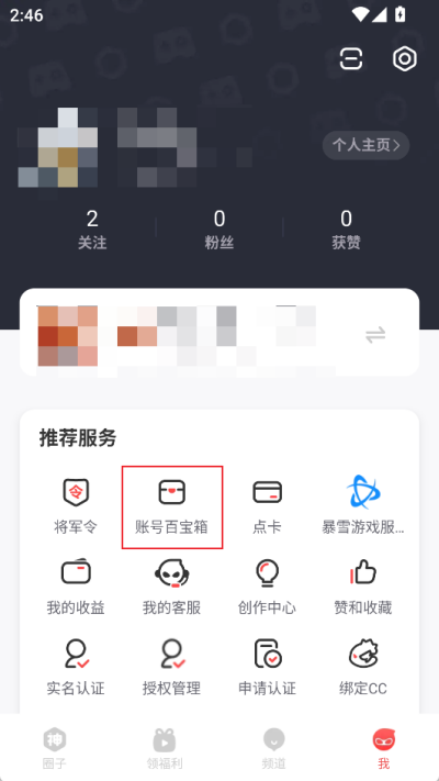 2、點(diǎn)擊后進(jìn)入個(gè)人信息界面,在這里找到其中的【賬號(hào)百寶箱】選項(xiàng);
