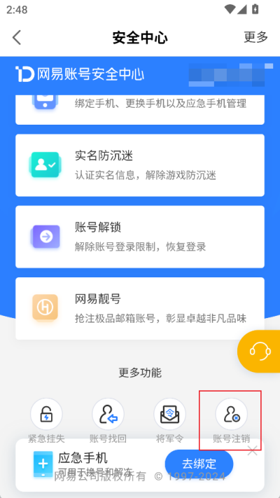 4、進(jìn)入賬號(hào)安全中心界面后,在最下方的位置可以看到【賬號(hào)注銷(xiāo)】的選項(xiàng),點(diǎn)擊該選項(xiàng);