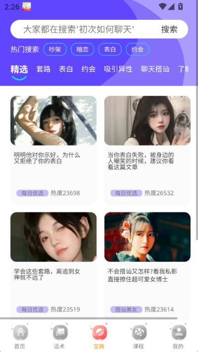 精選了諸多戀愛寶典和技巧,套路、表白、約會以及吸引異性等多種戀愛攻略在這里擁有詳細的教學