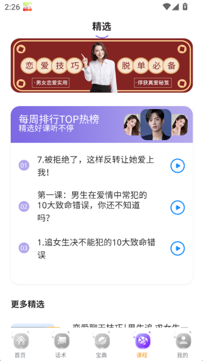 掌握戀愛技巧,脫單必備,精選了每周好課,通過聽課的方式掌握更多的戀愛技巧