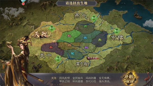 2、在里面可以選擇出生的地點,在里面共有五個不同的出生地可以選擇,選擇想要前往的地區(qū)開始征途;