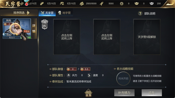 5、進入天字營后選擇主將,然后招募眾多的士兵,組建自己的防衛(wèi)軍隊;