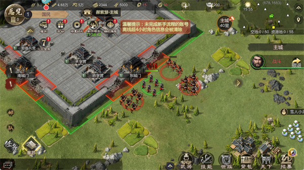 6、組建完成后點擊東城門開始征討入侵的敵人,選擇出兵將這些人全部剿滅。