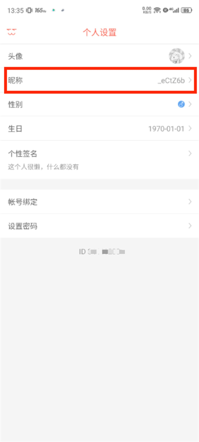 4、點擊后進入個人設(shè)置界面,在這里即可看到昵稱選項,點擊一下;