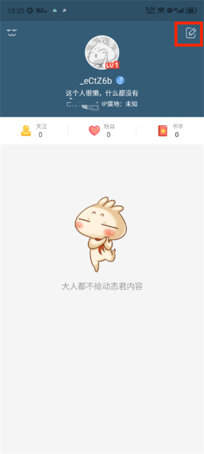 3、點擊后進入個人空間界面,然后點擊界面右上角的編輯按鈕;