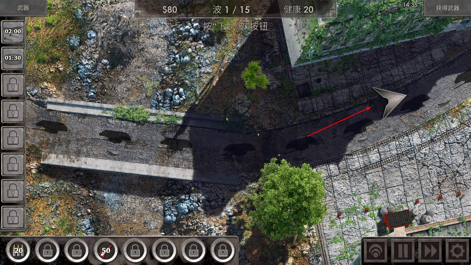 1、進(jìn)入戰(zhàn)地防御3后,先根據(jù)自身水平選擇四個難度等級中的一個,熟悉八種不同炮塔的基礎(chǔ)屬性與擺放規(guī)則,在首個關(guān)卡搭建初始防御陣線。