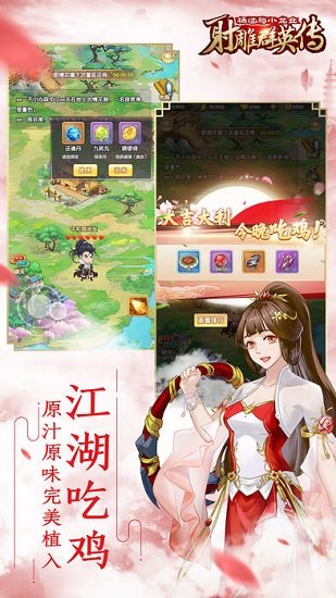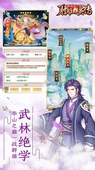 經(jīng)典原著,浪漫國風(fēng)武俠激情江湖:小說經(jīng)典原著,浪漫國風(fēng)打造另類情義江湖,《射雕群英傳》帶你重溫?zé)嵫鋫b夢,斷腸崖、光明頂、絕情谷、襄陽城經(jīng)典場景秒變戰(zhàn)斗之境,群英匯聚真人名句配音繞梁,情懷依舊再燃俠者戰(zhàn)魂!劍俠情緣!