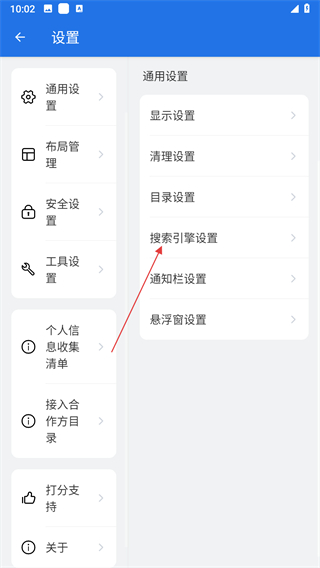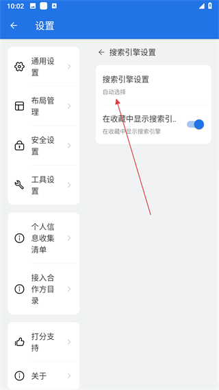 3、在設(shè)置頁面,點(diǎn)擊搜索引擎設(shè)置選項(xiàng)。