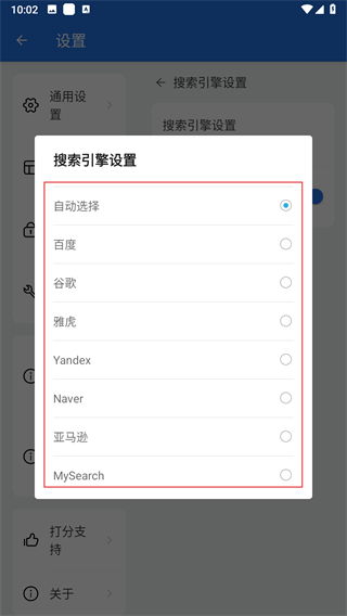 5、在彈出的列表中,選擇想要的搜索引擎。