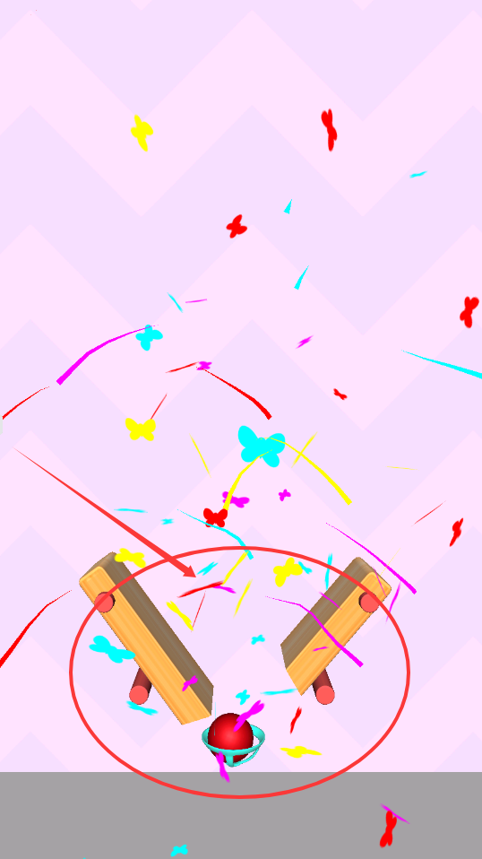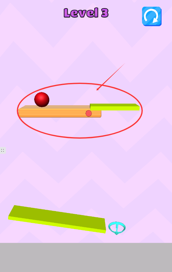 2、利用它們之間的距離關(guān)聯(lián),尋找到合適的劈開磚塊方案,讓小球可順利進(jìn)入籃筐里。