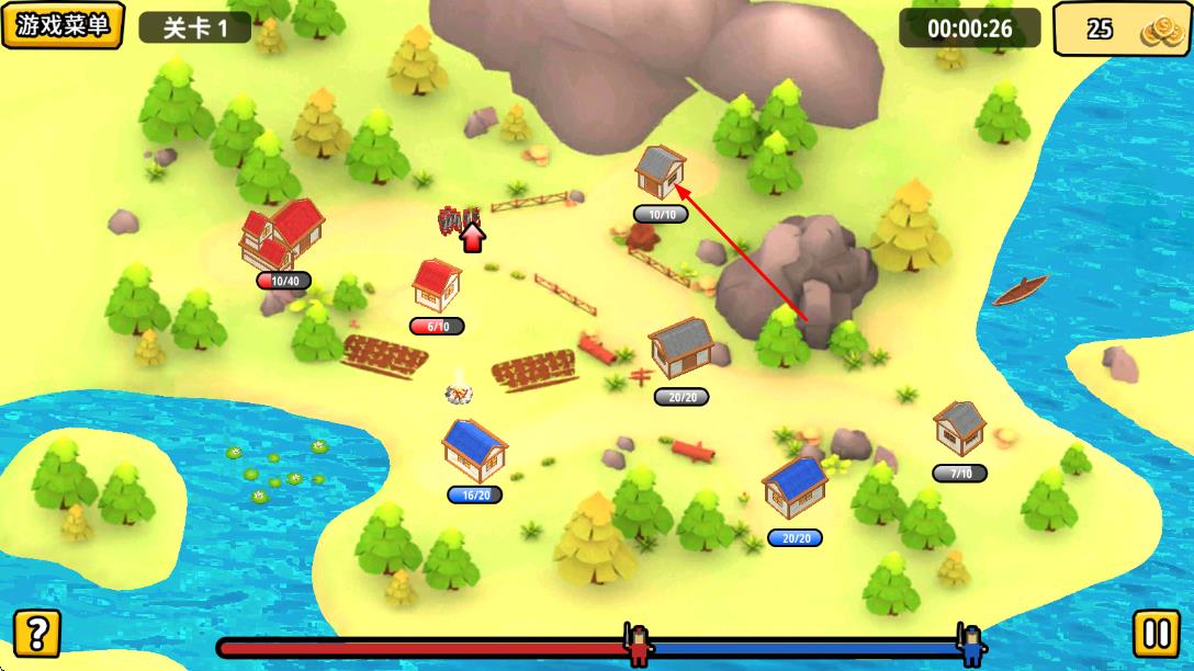 3、點擊小房子,派出紅色士兵占領。