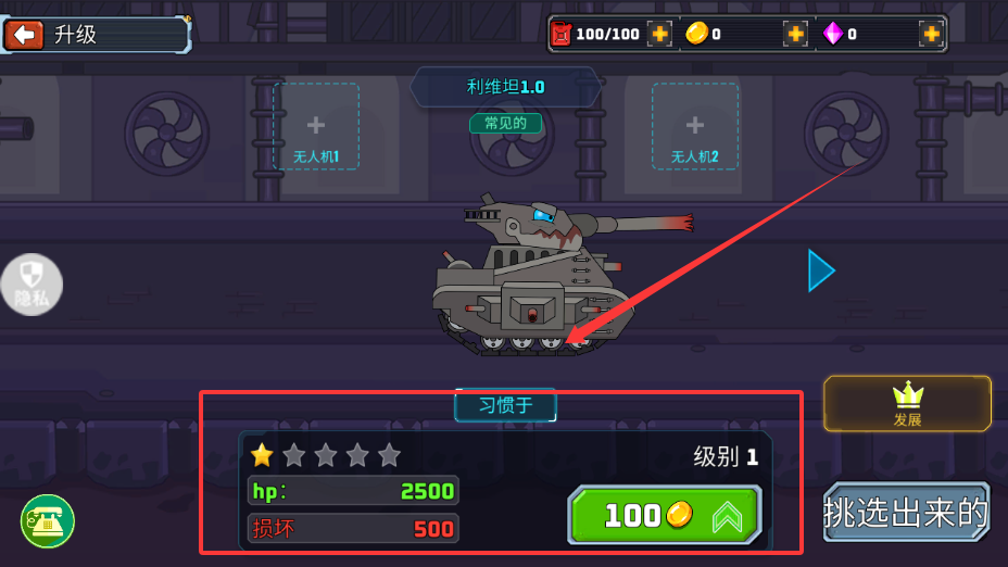 1、選擇自己喜歡的坦克強化升級。