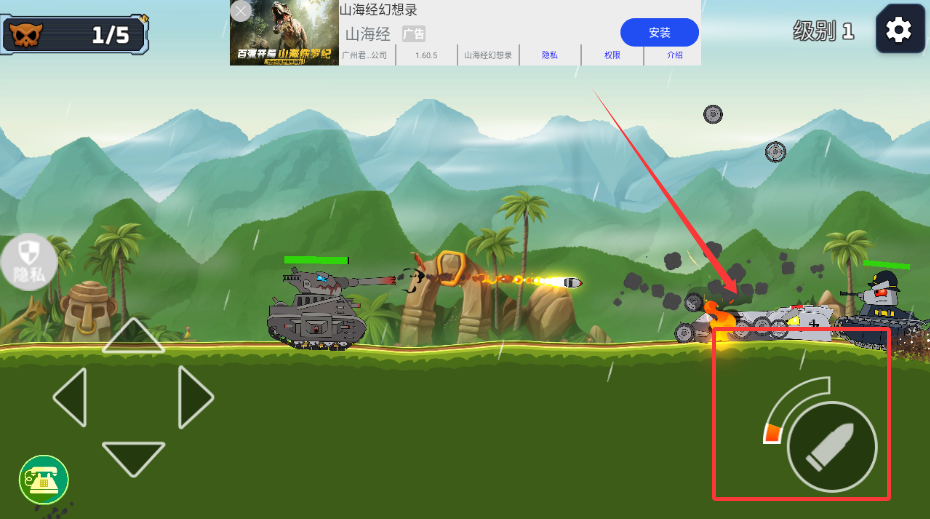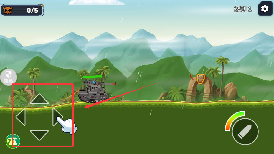 2、進入游戲后點擊左右方向鍵移動,上下調(diào)整射擊角度。