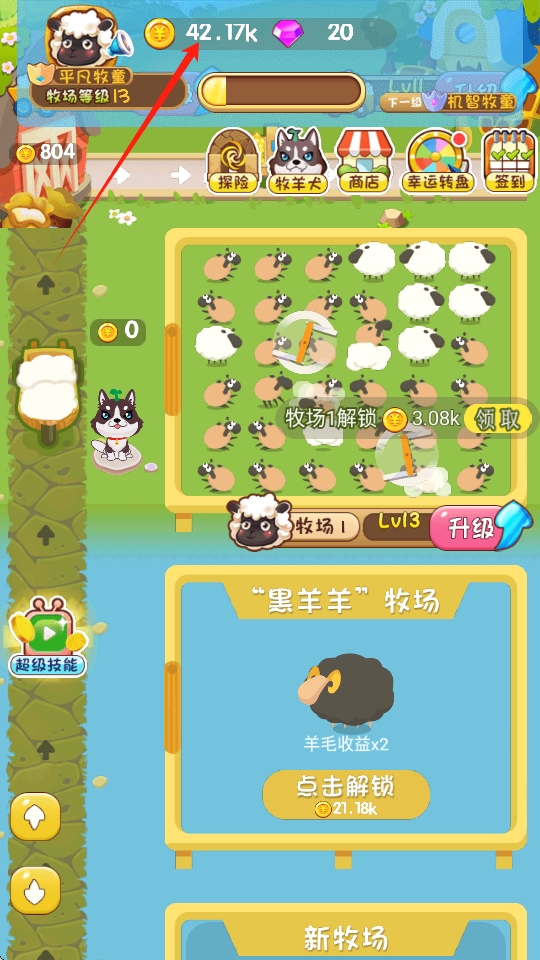 3、解鎖羊種擴(kuò)牧場(chǎng):玩家可不斷解鎖各種種類(lèi)的羊,從羊毛制品中獲取利潤(rùn),逐步擴(kuò)大自己的牧場(chǎng)規(guī)模。