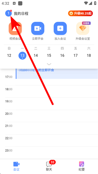 1、在全時(shí)云會(huì)議界面中,點(diǎn)擊我的日程區(qū)域,進(jìn)入個(gè)人功能頁(yè)面。