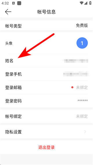3、在帳號(hào)信息的頁(yè)面,需要點(diǎn)擊姓名,進(jìn)入修改姓名的頁(yè)面。