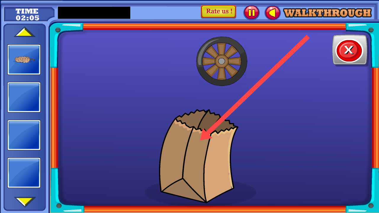 3、遇到物品界面,點(diǎn)擊相應(yīng)物品如袋子,探索線索,推進(jìn)游戲進(jìn)程,完成逃脫的任務(wù)。