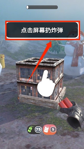 1、打開游戲,點(diǎn)擊進(jìn)入游戲進(jìn)入游戲畫面,點(diǎn)擊屏幕扔炸彈。