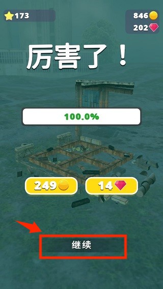 3、通關(guān)之后,點(diǎn)擊繼續(xù)即可前往下一關(guān)。