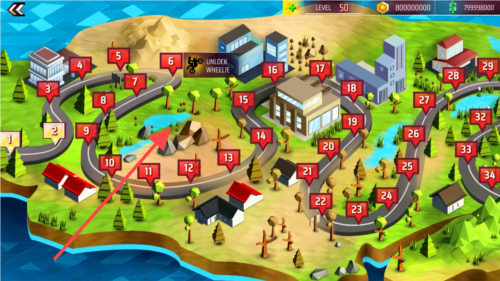 2、在地圖界面,熟悉各關(guān)卡位置,規(guī)劃路線,解鎖【UNLOCK NEXT LEVEL】以開啟新關(guān)卡挑戰(zhàn)。