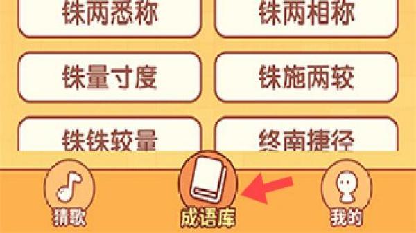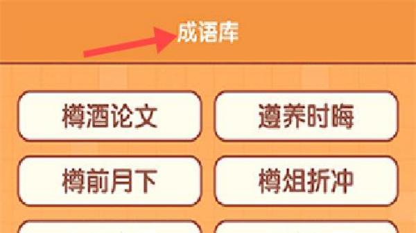 1、在游戲中若想查看成語相關(guān)內(nèi)容,可點擊【成語庫】按鈕,進入成語展示界面。