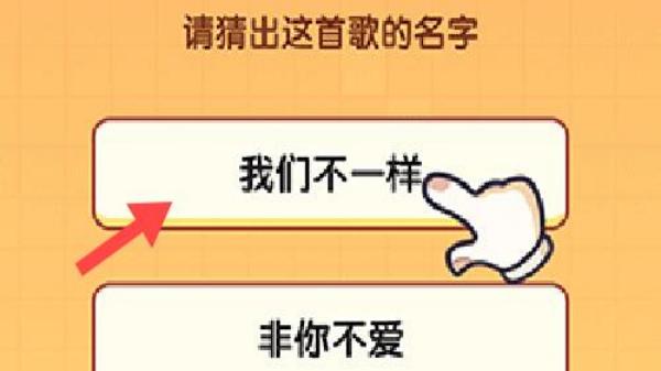 2、在猜歌環(huán)節(jié),根據(jù)提示 “請猜出這首歌的名字”,若認為答案是 “我們不一樣”,點擊對應(yīng)選項即可進行作答。