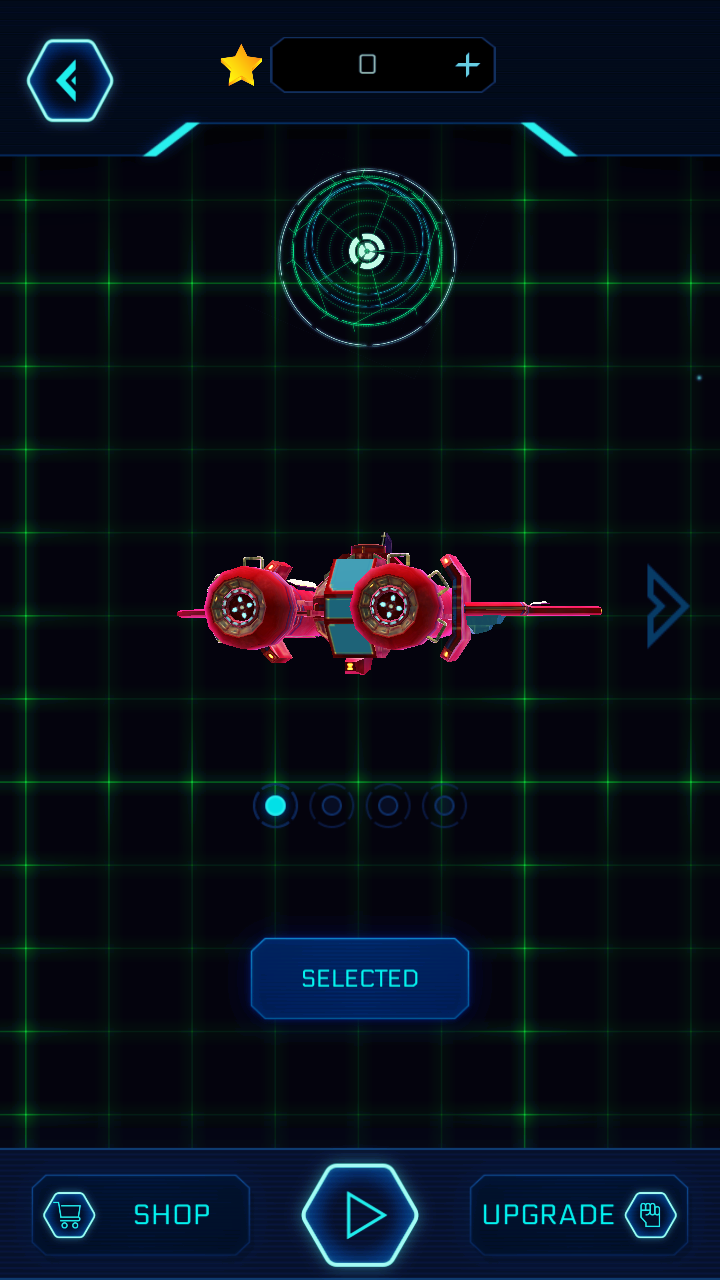 2、查看紅色飛船狀態(tài),可通過【SHOP】購買道具或【UPGRADE】提升飛船性能,增強(qiáng)戰(zhàn)斗能力。