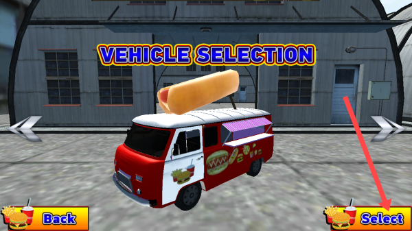 2、在車輛的選擇界面中,你需要點(diǎn)擊右下角【Select】按鈕,選定餐車,進(jìn)入游戲環(huán)節(jié)。