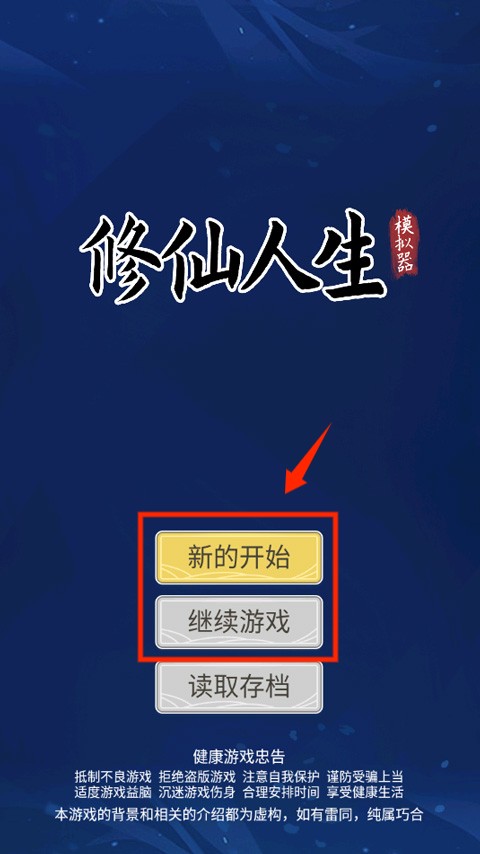 1、下載安裝好修仙人生模擬器,運行游戲,點擊新的開始。