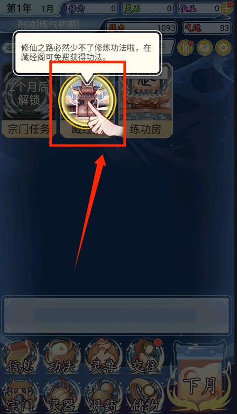 1、進入游戲后,玩家先選擇初始發(fā)展方向,根據(jù)自身喜好,決定是先專注修煉功法,為游戲帶來多樣性。