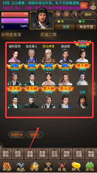 2、重新選擇天賦,天賦是可以改的,在客棧二樓找百曉生,選擇鴻運(yùn)當(dāng)頭天賦。
