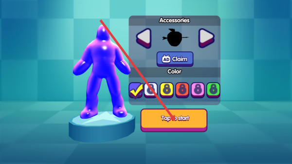 1、進(jìn)入游戲界面后,點(diǎn)擊下方橙色的【Tap to start】按鈕(第一張圖箭頭指向),開啟游戲冒險(xiǎn)。