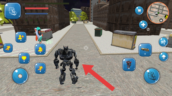 2、玩家操控機(jī)械戰(zhàn)士在城市環(huán)境中自由行動,體驗(yàn)科幻戰(zhàn)斗與探索樂趣,機(jī)器人角色可施展多樣技能,界面布局包含攻擊、技能、地圖等功能按鈕,營造沉浸式未來冒險氛圍。