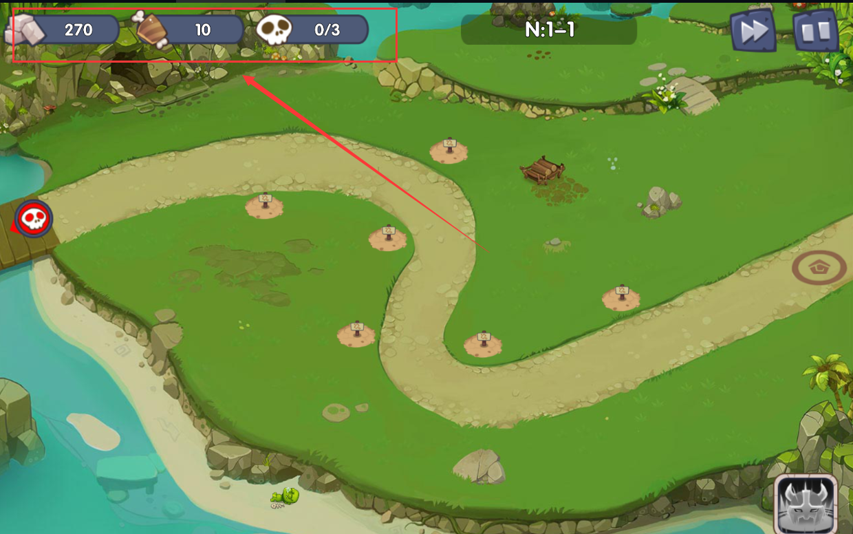 2、屏幕下方顯示當(dāng)前擁有的防御設(shè)施與資源數(shù)量,點(diǎn)擊可查看各類防御塔的詳細(xì)屬性說(shuō)明。