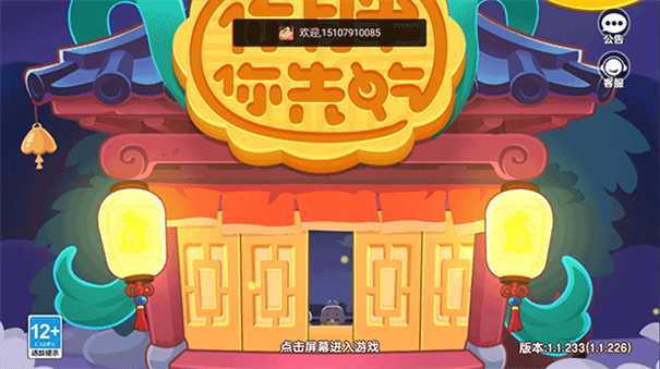 2、在游戲界面,點(diǎn)擊屏幕進(jìn)入游戲,留意界面上的【歡迎:15107910085】等信息,熟悉游戲入口界面布局。