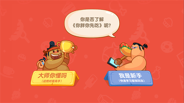 3、初次進(jìn)入游戲,若不了解玩法,點(diǎn)擊【我是新手(快速學(xué)習(xí)游戲玩法)】選項(xiàng),快速掌握《你胖你先吃》游戲規(guī)則。