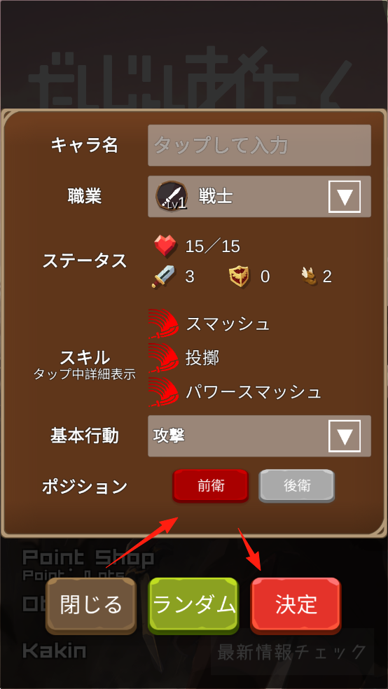 2、進(jìn)入角色創(chuàng)建界面,輸入角色名,職業(yè)默認(rèn)“戦士”也可按需調(diào)整。確認(rèn)屬性點(diǎn)數(shù)信息,選擇基本行動(dòng)點(diǎn)擊決定完成角色創(chuàng)建。