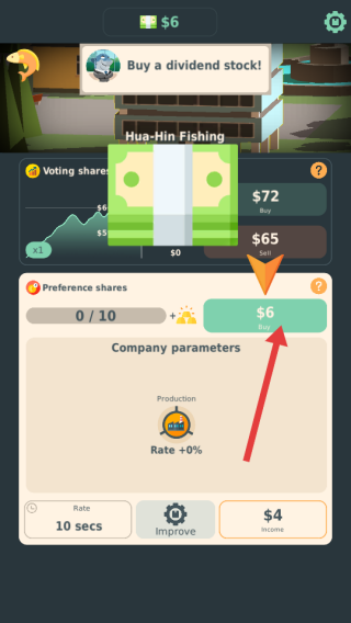 2、在公司界面,有足夠的金幣可以點擊【$6】按鈕,購買分紅股票。