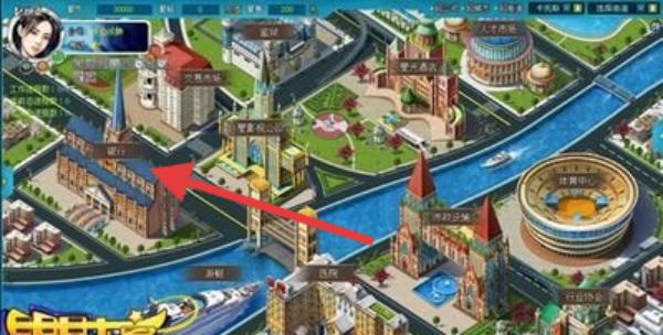 1、在城市界面中,點擊箭頭所指的建筑,可能觸發(fā)相關劇情或任務。