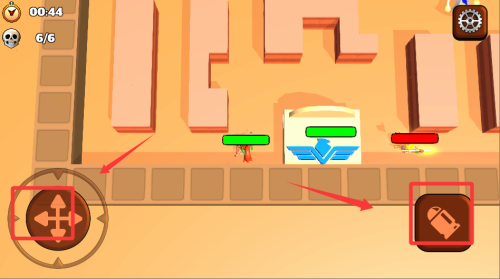 1、進入游戲先熟悉基礎(chǔ)操作,左側(cè)搖桿控制移動,右側(cè)按鈕負責射擊和裝彈。