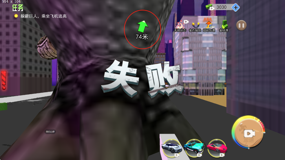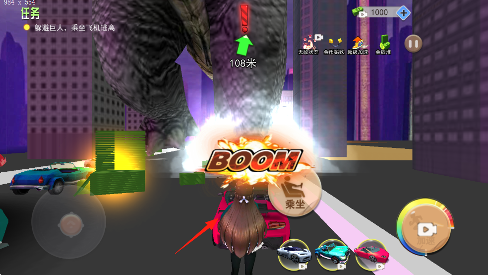 1、進(jìn)入游戲后快速熟悉虛擬搖桿操作,在城市地圖中奔跑躲避巨人腳步,注意觀察地面陰影預(yù)判踩踏位置。