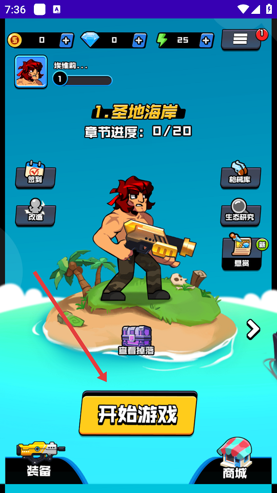 1、點(diǎn)擊開始游戲進(jìn)入,按章節(jié)劇情推進(jìn)逐步解鎖強(qiáng)力武器裝備。
