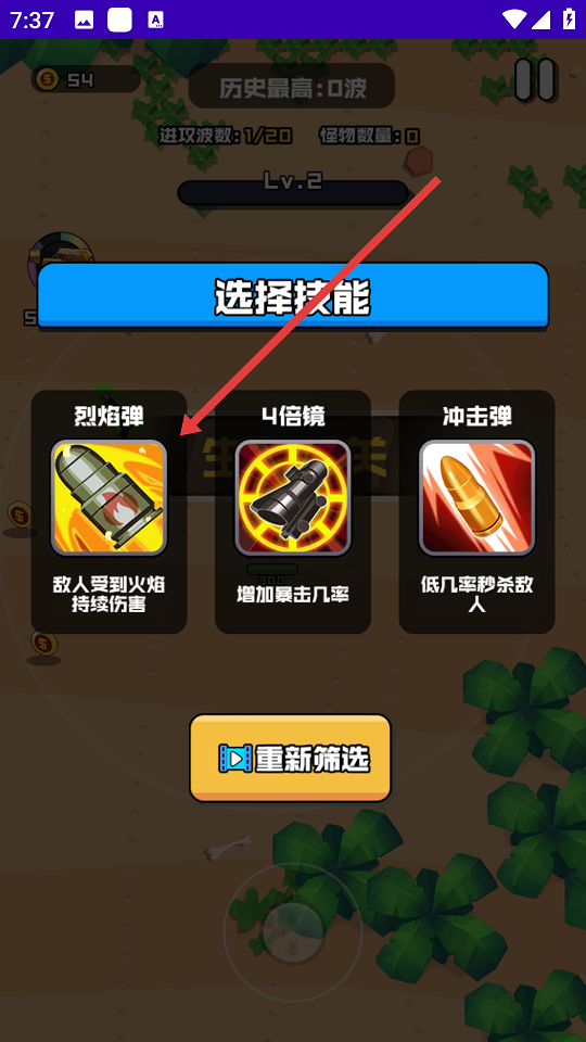 3、勝利后可根據(jù)自身屬性補(bǔ)全短板,選擇技能加成為下一關(guān)做好準(zhǔn)備。