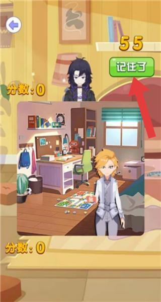 1、呈現(xiàn)了游戲中的互動場景,有角色、房間布置及分?jǐn)?shù)顯示,點擊【記住了】交互按鈕,展現(xiàn)該游戲推理互動等玩法相關(guān)畫面。