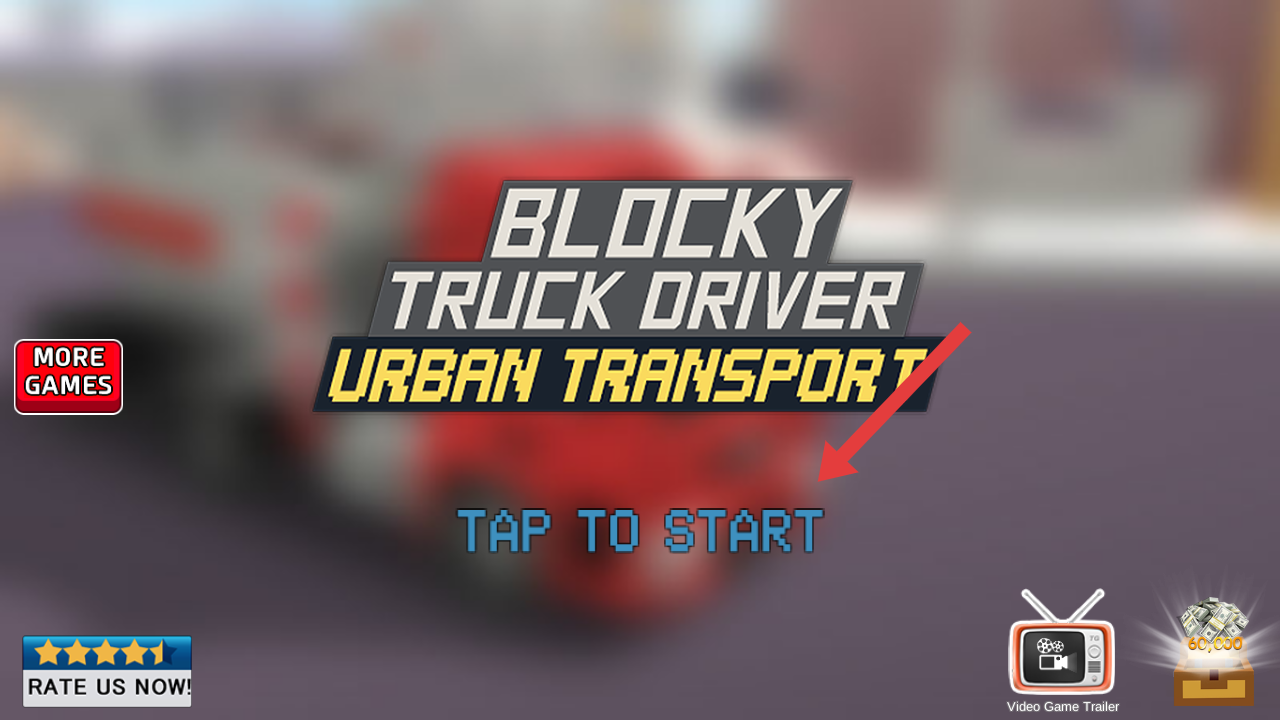 1、進(jìn)入方塊卡車城市交通的游戲界面,點(diǎn)擊【TAPTOSTART】開啟游戲,開始城市運(yùn)輸卡車駕駛之旅。