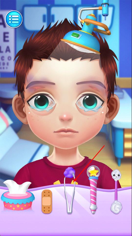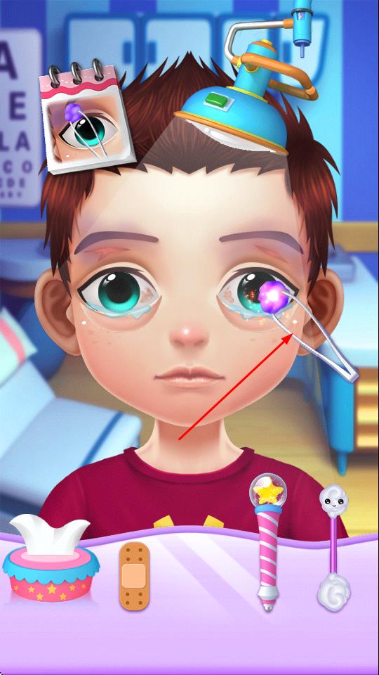 3、在診療過程中滑動屏幕切換工具,點擊對應(yīng)器械進行檢查治療,按照提示步驟完成手術(shù)操作,治愈患者眼疾。