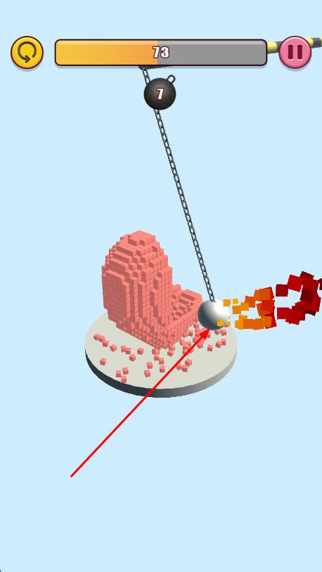 1、進入關(guān)卡后滑動屏幕操控錘子移動,撞擊小型方塊建筑積累體積,優(yōu)先破壞底層支撐結(jié)構(gòu)引發(fā)連鎖崩塌,避免直接挑戰(zhàn)大型建筑導(dǎo)致反震后退。