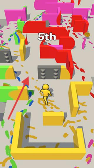 2、迷宮賽跑場(chǎng)景,黃色小人在彩色墨水迷宮中競(jìng)賽,當(dāng)前顯示當(dāng)前排名“5th”。