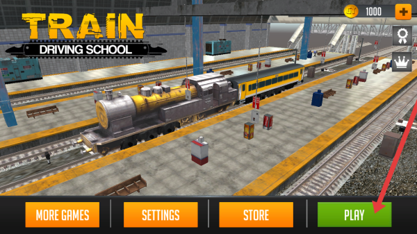 1、進(jìn)入火車駕駛學(xué)校模擬器的游戲界面,點(diǎn)擊右下角綠色【PLAY】按鈕開始游戲,開啟火車駕駛之旅。