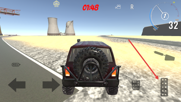 3、在駕駛場景,操控車輛沿道路行駛,避開障礙,利用道具(如右側(cè)物品),在倒計時(01:48)內(nèi)逃離核爆區(qū)域。